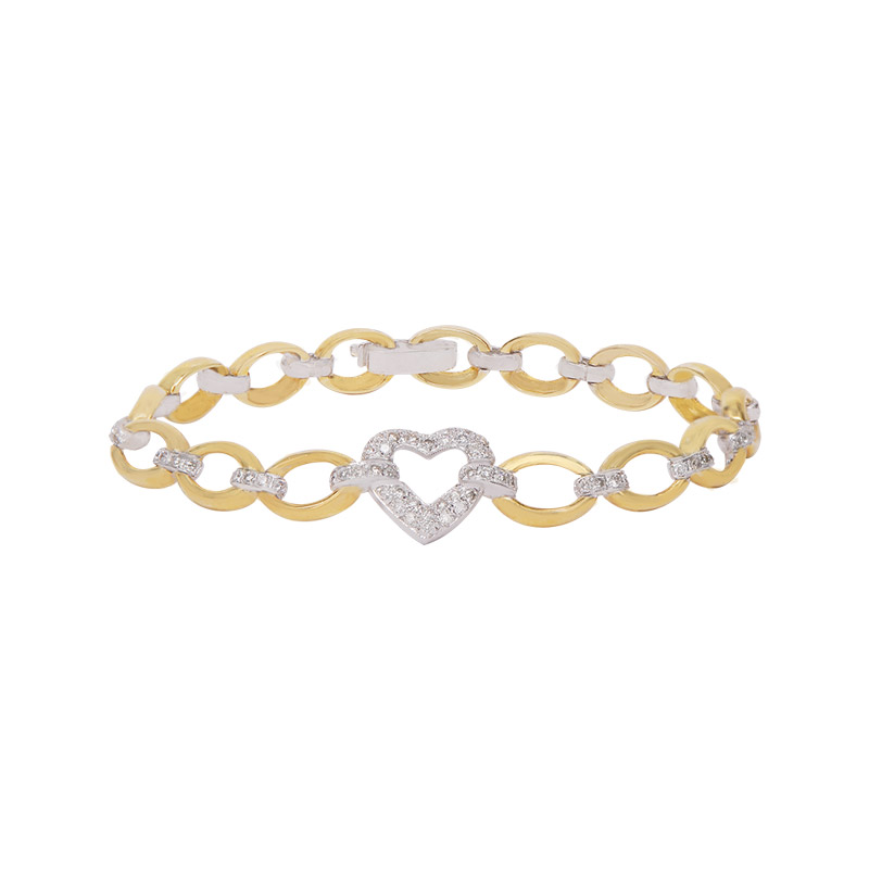 If you want a stunning way to display your love, this bracelet is perfect. Yellow and white gold linked together, encrusted with precious sparkling diamonds. You will shine and sparkle wherever you go.