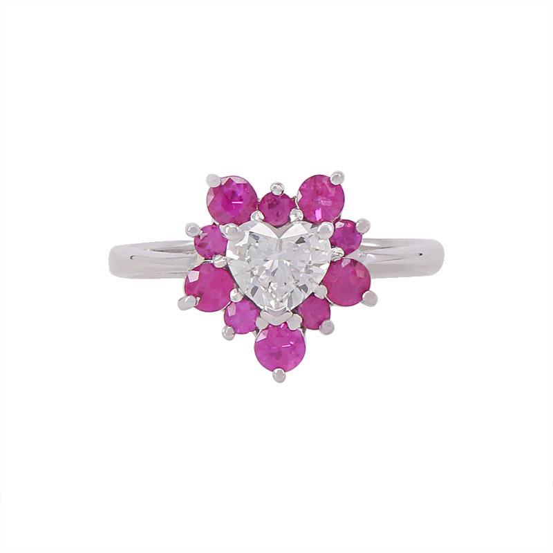 Type : 18K White Gold Diamond Heart Shape and Rubies