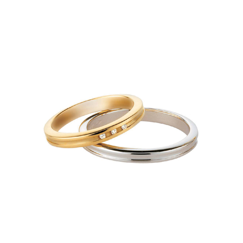 A pair of rings that are different in appearance, but share
