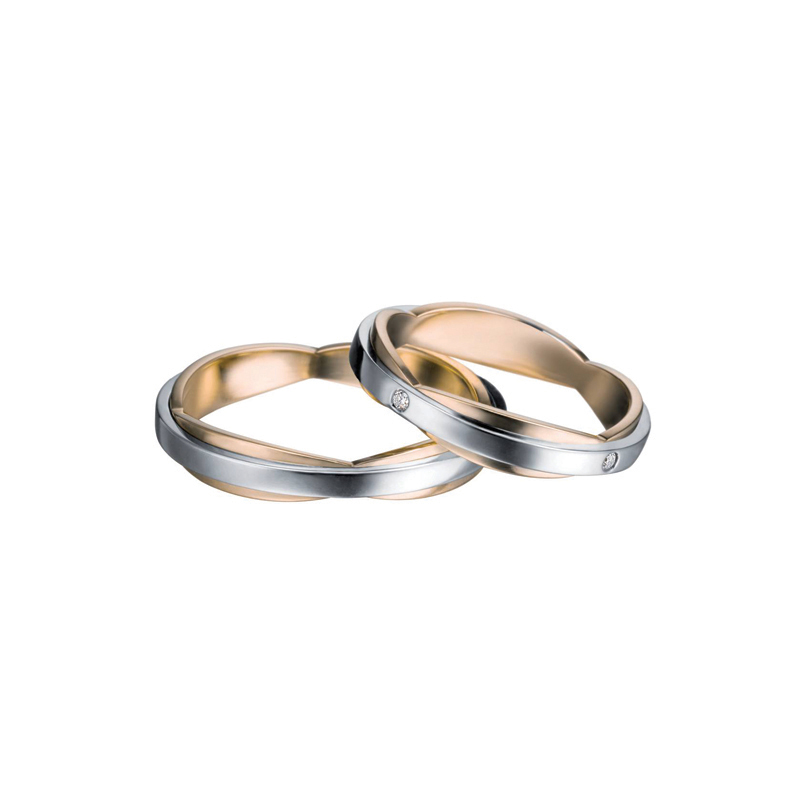 You’ll be reminded of the purity of your love when you see these darling rings. Intriguing patterns of yellow gold, undulating between sumptuous white golden curves.