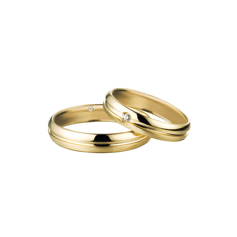 You’re like two halves making a whole and your heart feels that every day. Just like this pair of rings, two halves of splendid yellow gold that meet and touch even when apart. The diamond in her ring is like a heart held closely by two people madly in love.