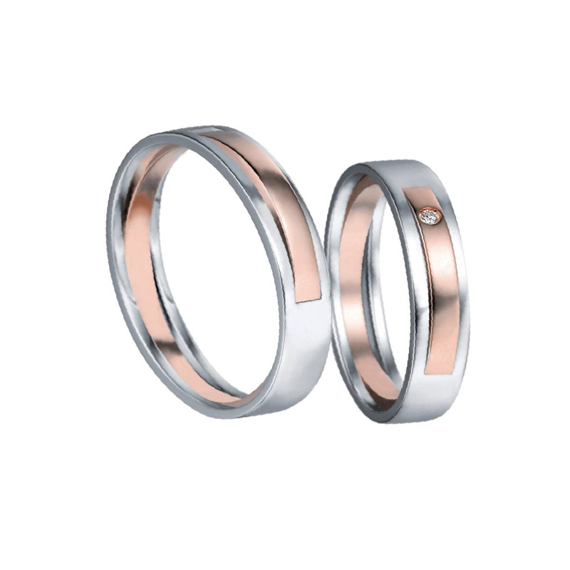 Two types of gold, forever held tightly together. Just like the place in your heart that beats for the other. You’ll have a constant reminder of the all-encompassing love that you feel for one another. With a beautiful diamond inset into her ring that shines like your love.
