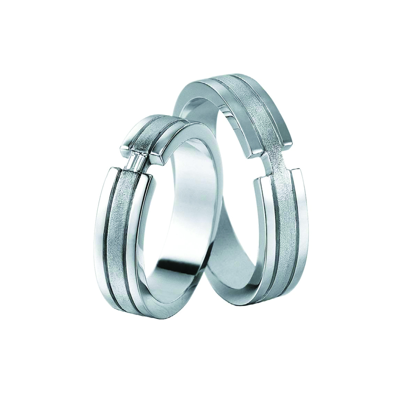 Unique rings for your unique relationship. This modern pair of rings connect beautifully. Apart from the sparkling diamond in her ring, you can’t tell them apart. Closeness symbolized in two perfect platinum rings.