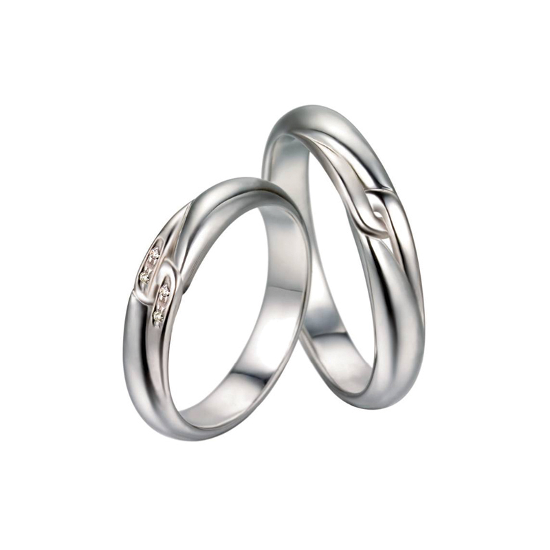You and your partner will be reminded of the power of love that you feel. The swirling pattern that caresses and meets at a loving embrace is a potent symbol of your love. Her ring has diamonds set into the middle, like your hearts held closely together.