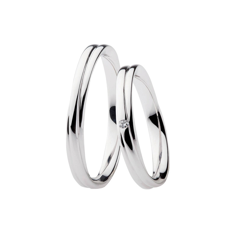 You’ll feel closer when you’re both wearing these. White gold or platinum, contoured and shaped into a captivating display of togetherness. Two equals one, hearts inseparable in a loving embrace. A dazzling diamond in hers represents the sparkling passion of your love.
