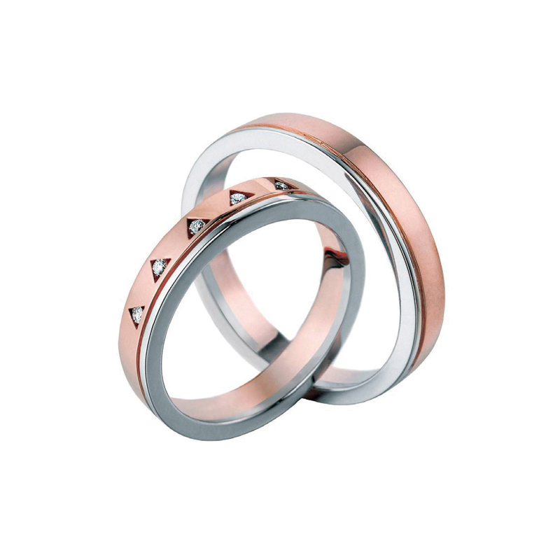 Love always speaks the truth, and you’ll fall in love with these at first sight. Unique rings, that fascinate with sweeping white and rose gold. Hers has perfect diamonds set into triangular shapes, that will captivate and enthrall your soul.