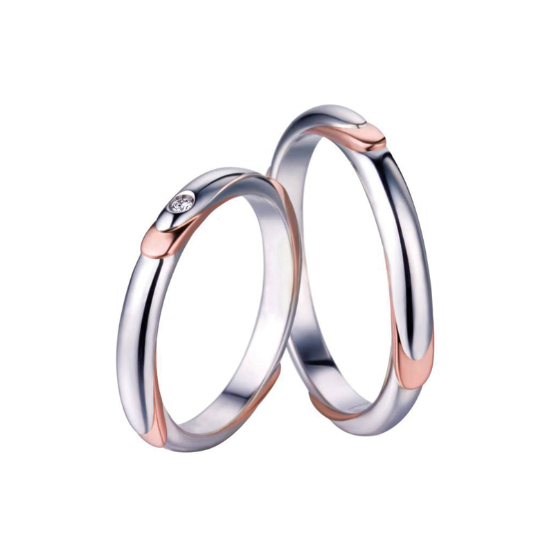 You’ll want to share your love forever by wearing these rings at all times. Ever increasing circles of white gold, with glimpses of sensuous rose gold give the impression of never ending love. Her shining diamond radiates elegance and passion.