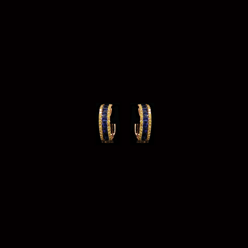 18K Yellow Gold Fancy Yellow Diamond and Sapphire Earring