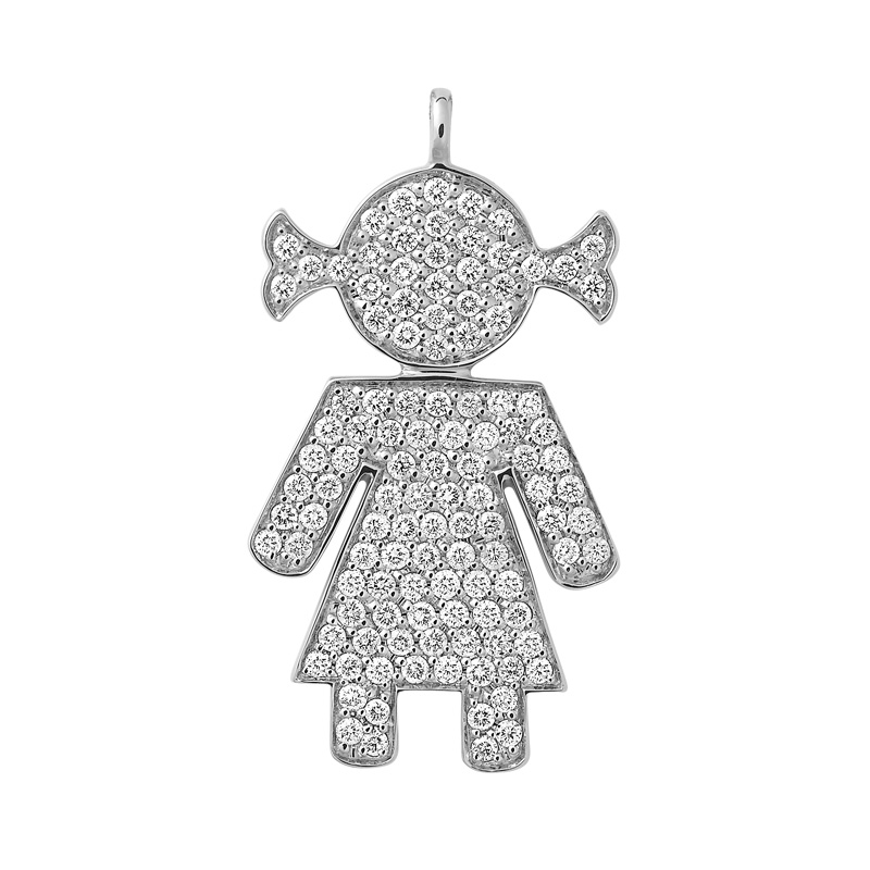 You’ll stand out in the crowd wearing this stunning female pendant, studded with countless diamonds. Opulent and delightful in the same breath, you’ll sparkle and impress with ease.